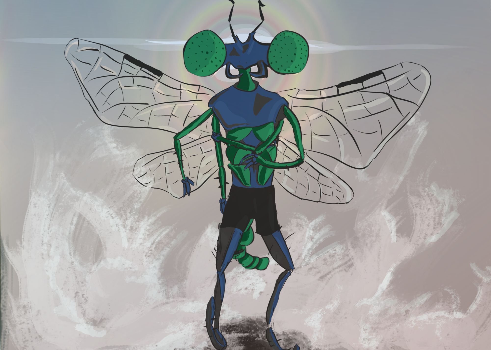 I saw a bee holding a trident of black stingers pointed to the unseen sky, like war has been declared on all light source itself.