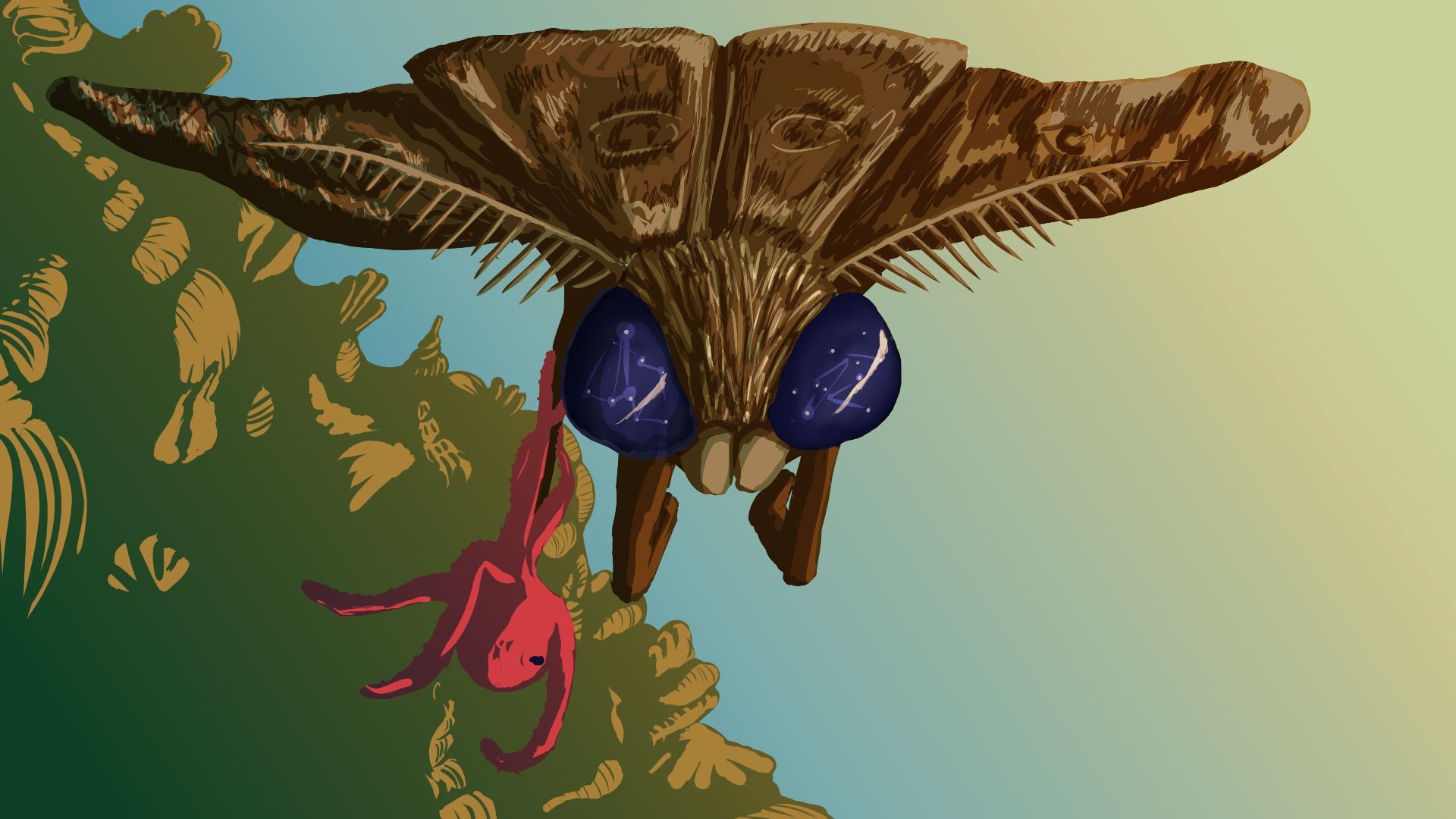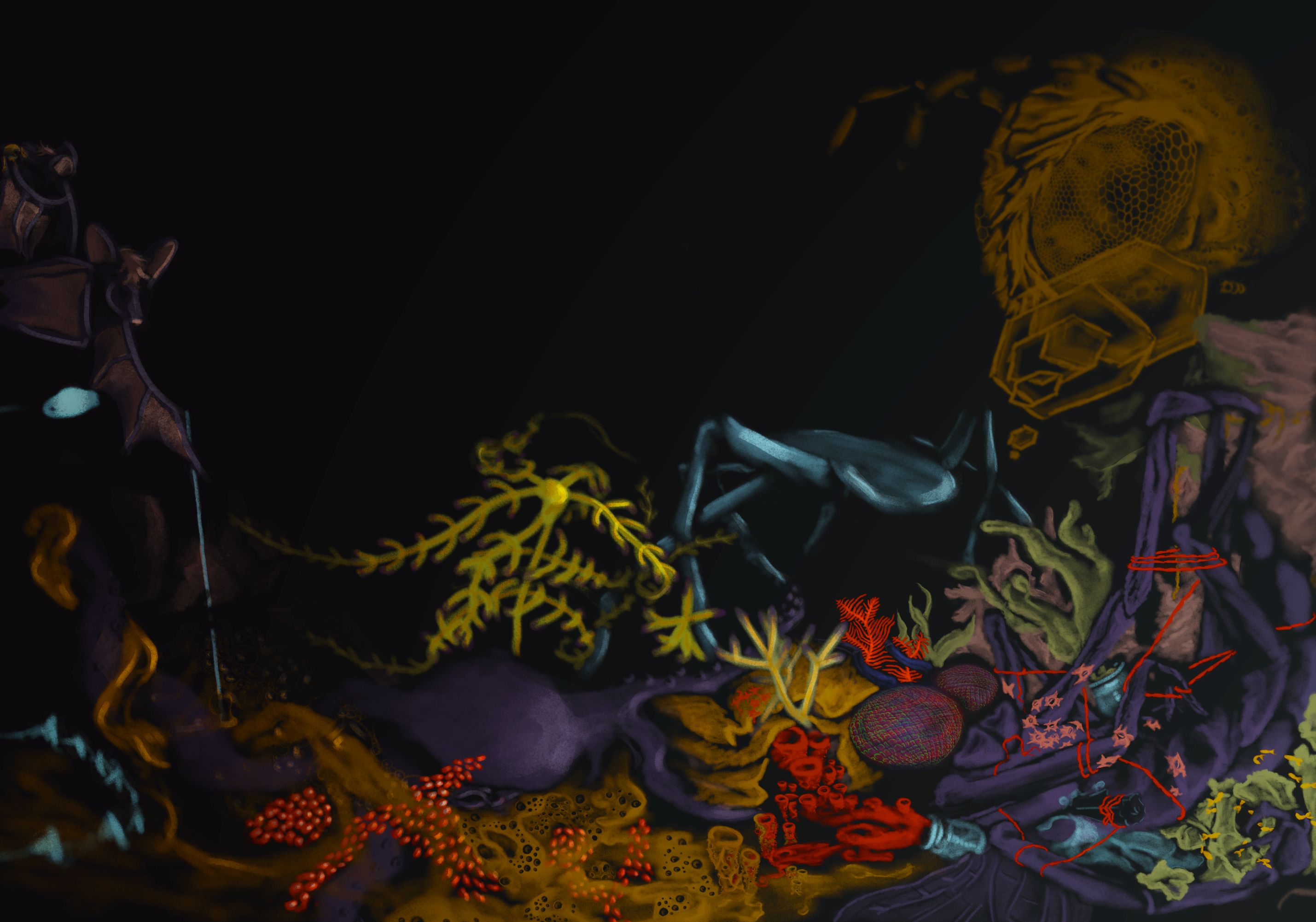"The skeletons of the seabed will come unburied and spear every creature with the force of an eternal tsunami. You will come to know the crushing weight that has worn the stygiomedusa to a membrane. You will learn of the sting of cnidarian venom and you will hear my laughter in the dark home of the magnapinna that will cover the entirety of your life. You will feel the black like an eel swarm with their unclosing eyes and swirling bites.
