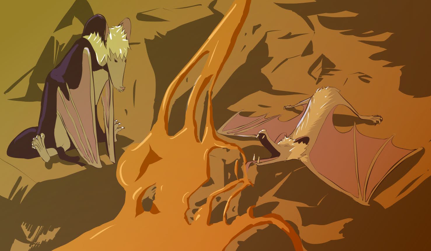 The bee had walked us into a thin but tall hallway where the walls were a semi-transparent glass candy, staining us with a warm, orange light.