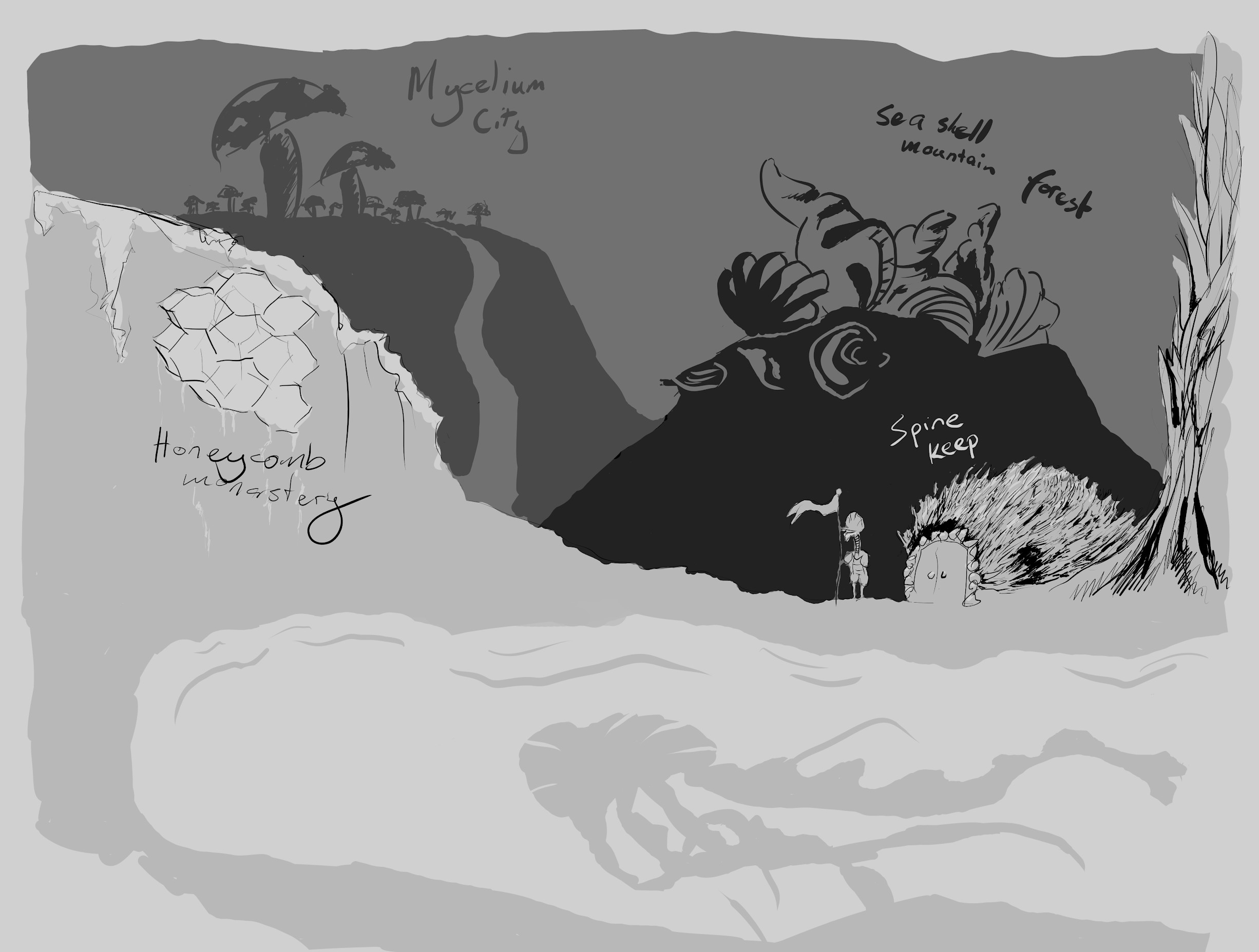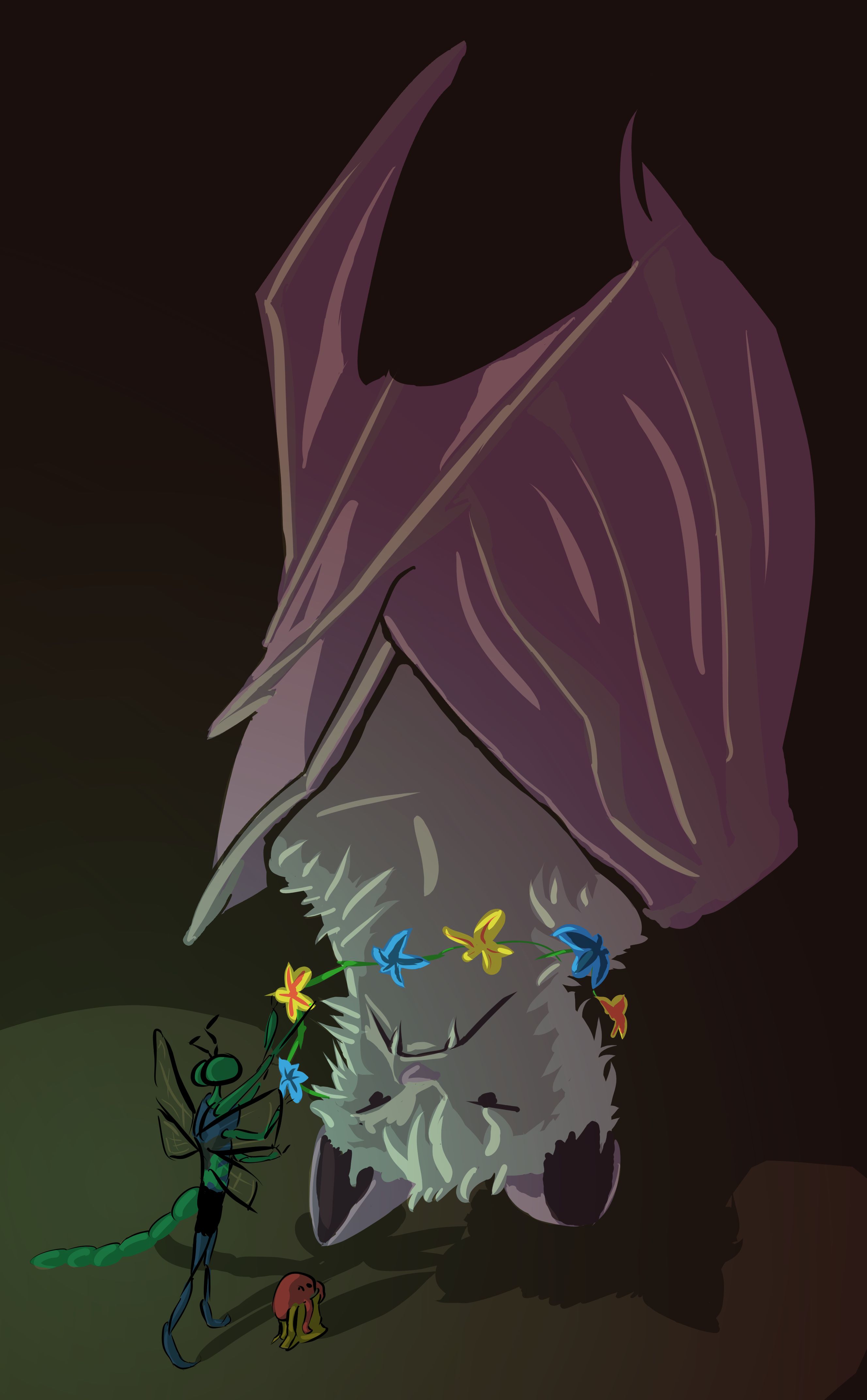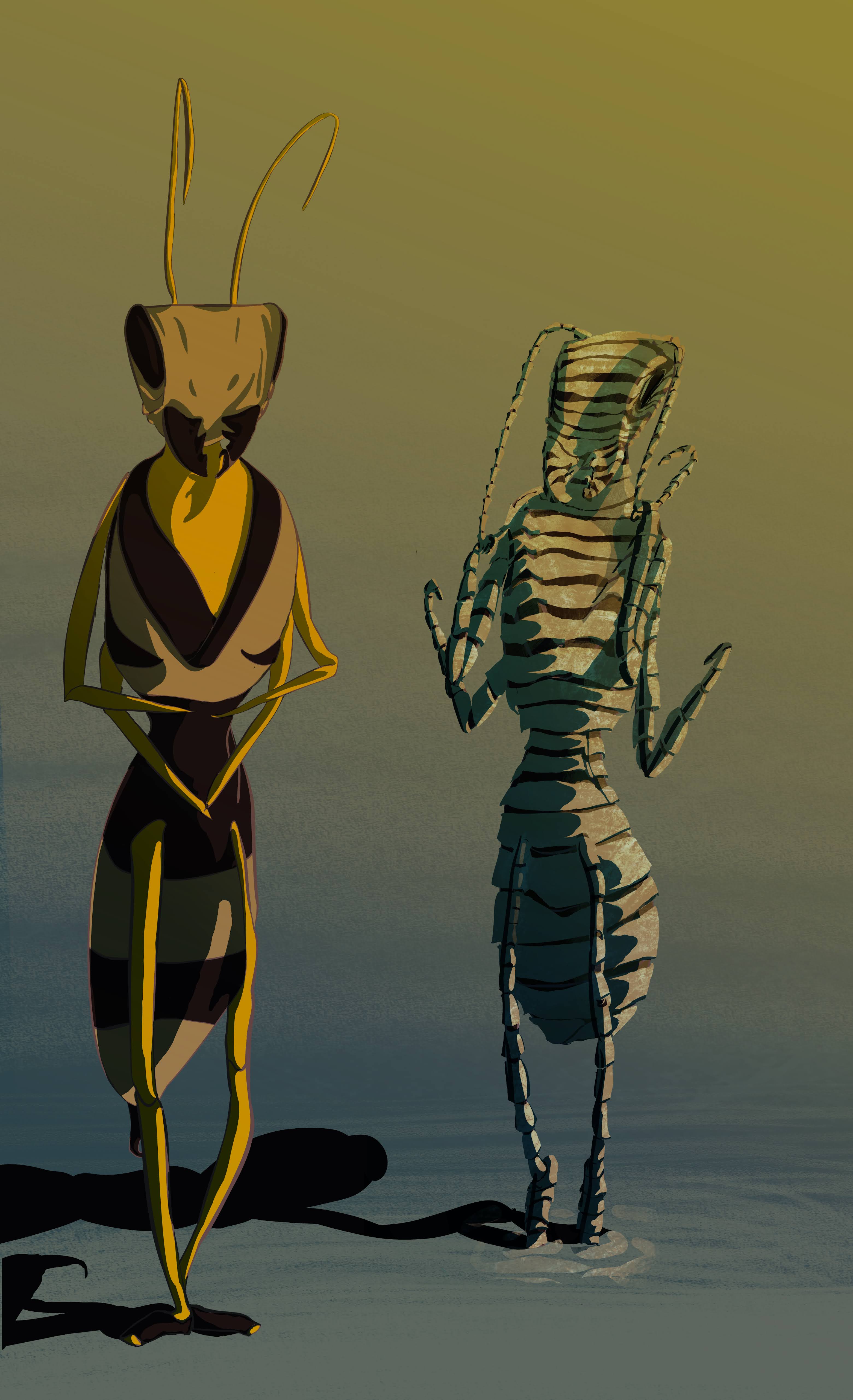 The bee we were talking to suddenly flew away to an upperchamber, and another stepped out of a nearby archway addressing us.