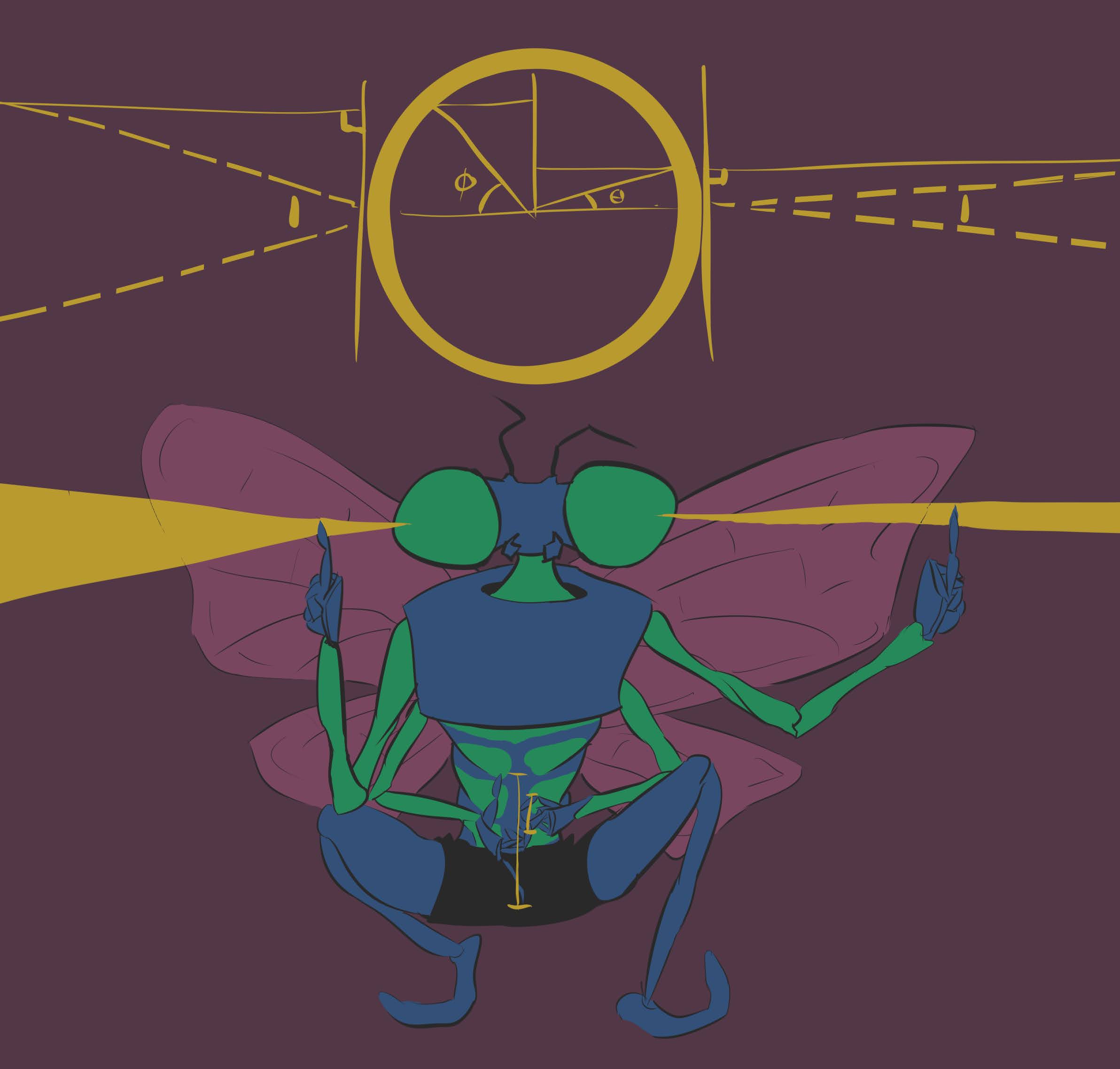 "Yes I recall your names. No-one in our known history has yet cohorently defined the shape of our world, so navigating it is a confusing task, aside from saying you are following the pulses or going against. If you're lucky, the stars haven't changed much in a generation. But what if you don't go along the pulse and instead to the side? I call this angle from the pulse direction the spin angle. Many say you can't really move that way as they don't see it affect their distance from the pulselight but we do seem to be able to move from each other that way. Maybe the pulselight wouldn't change as we expect. What if the pulselight sees what we thought of as lateral movement as a rotation instead, a walking around it like it is a sort of center to things. With this theory, you can get back to where you are even quicker by an entirely different path. If we live in a donut plane, we can fix our great supply chain issues by calculating the ideal spin angle for the fastest pathways the chain can span for pollenation and delivery. Everyone could even change where they live based on the spin angle that gets them a better line of delivery for what they need as everything constantly circulates, like a rotating helix about the pulselight. And for those of us with wings, we could fly directly into the sky and it would be the same as walking a greater length around the pulselight-".